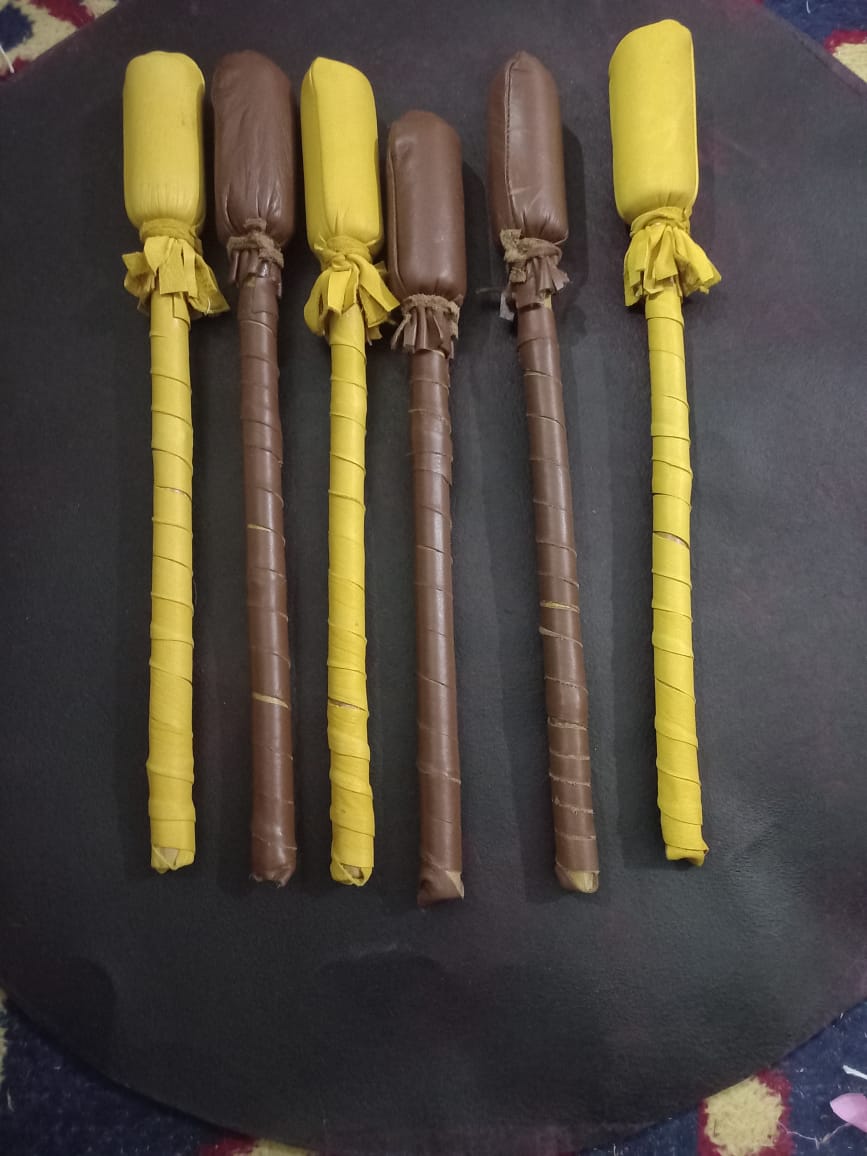 The edges are sanded to avoid any sharp contact with drum skin and hands.